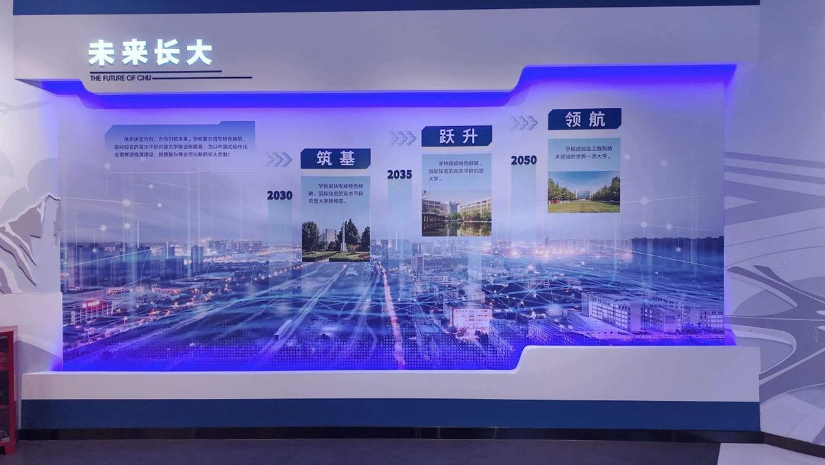 本次改造以“文脉赓续、红色铸魂、成果赋能”为核心,对校史馆布展内容与展陈形式进行系统性优化升级,将“两路”精神等红色基因有机融入展陈脉络,集中呈现学校近五年在学科建设、人才培养、科学研究等领域的突破性成就。